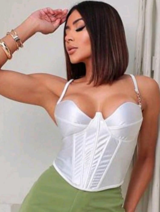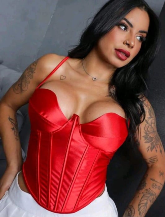 Corsele Prada com detalhes no tecido Prada, barbas internas para sustento, e bojo para modelagem do peito. Elegante e estruturado, esse modelo proporciona firmeza e conforto, ideal para looks sofisticados.